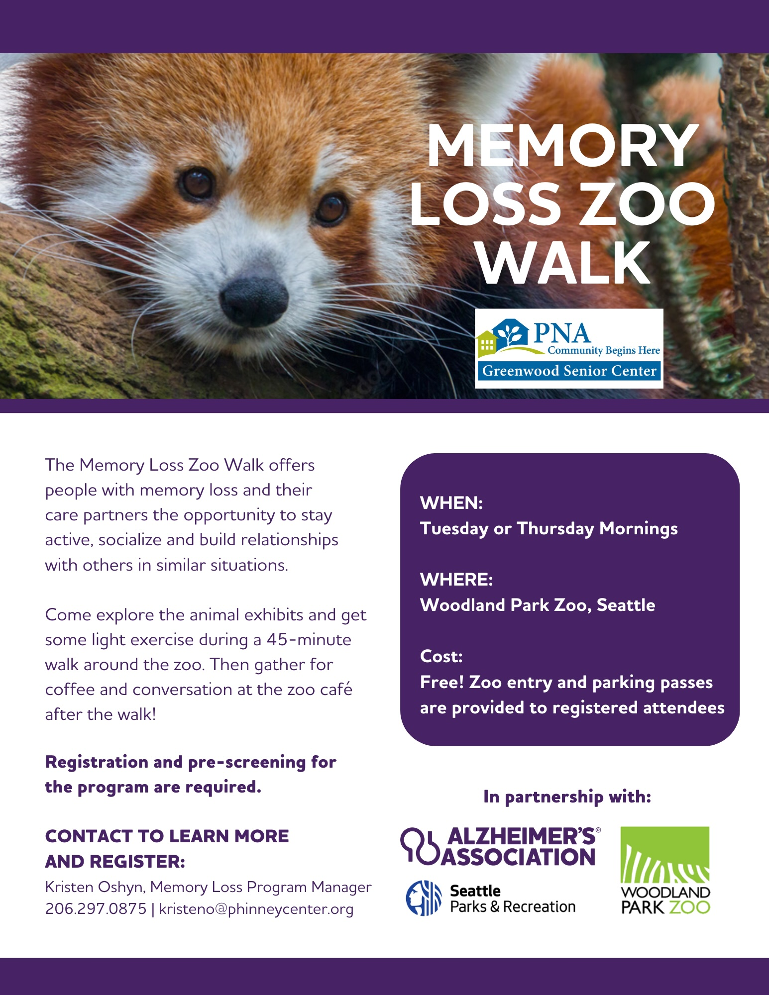 Memory Loss Zoo Walk Tuesday, July 15, 2025 9:30 AM 11:00 AM 09:30 11:00 Seattle, WA (map) Google Calendar ICS
